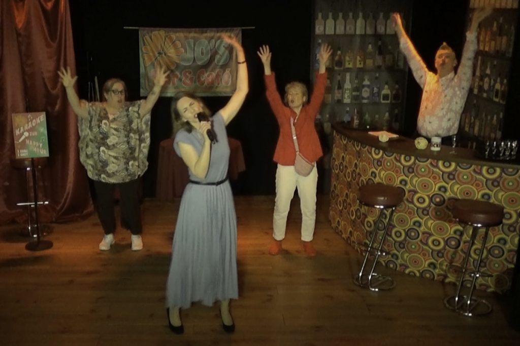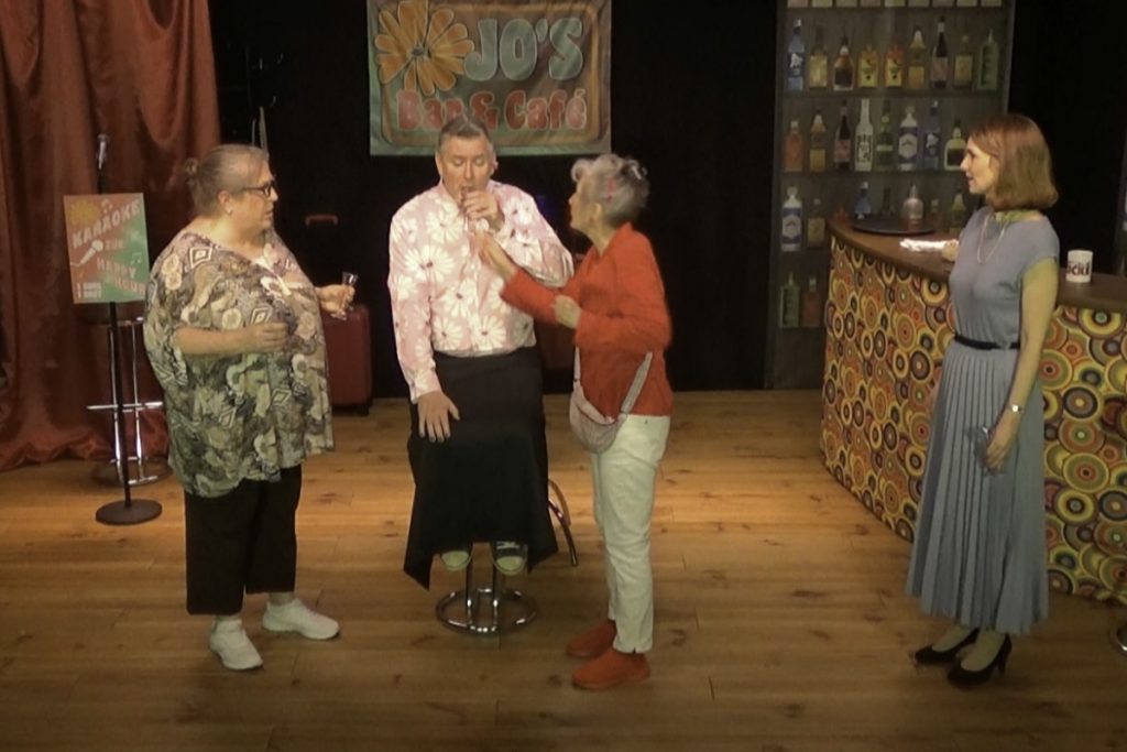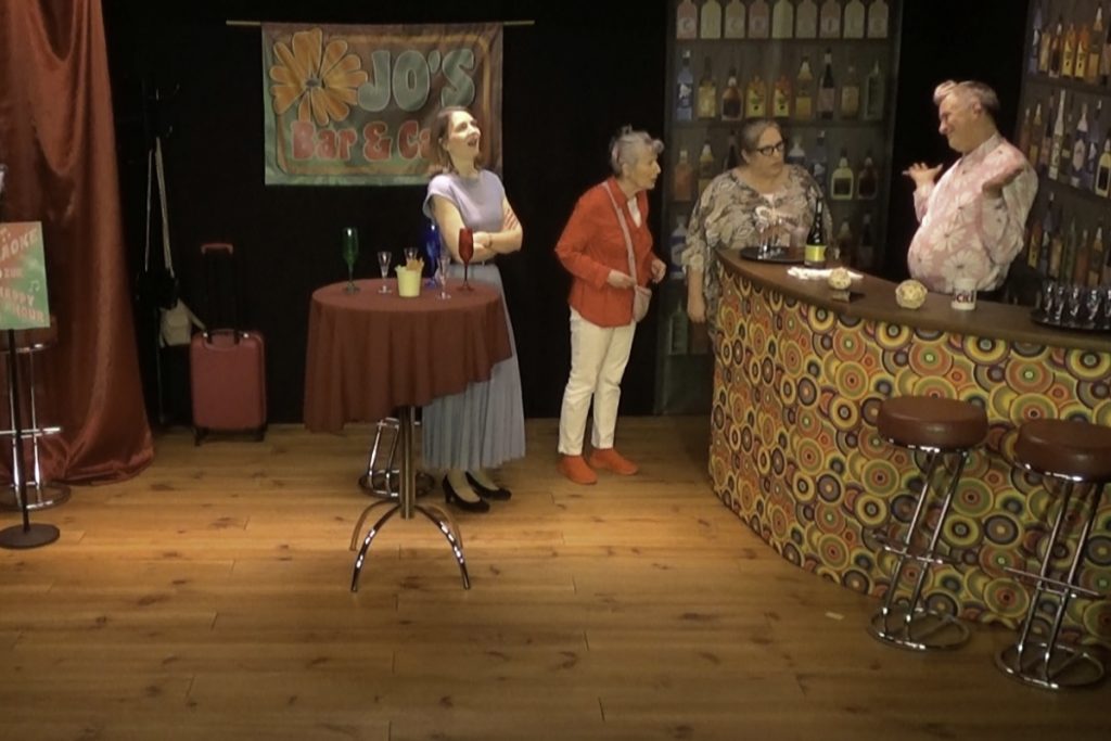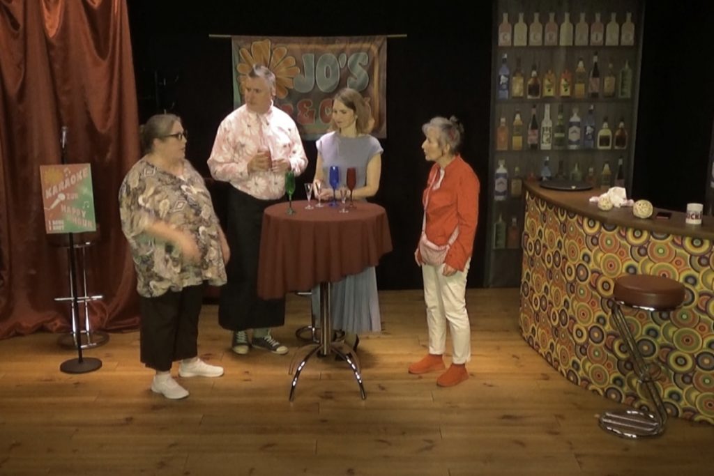 Mitten drin ist Barkeeper Jo, der das Damenkränzchen perfekt mit Secco und Zickengold versorgt und natürlich auch ein paar Wörtchen mitzureden hat. Und wenn Worte nicht mehr reichen, wird auch mal zum Mikrofon gegriffen, um das Ganze mit spritziger, mitreißender Musik zu bereichern.