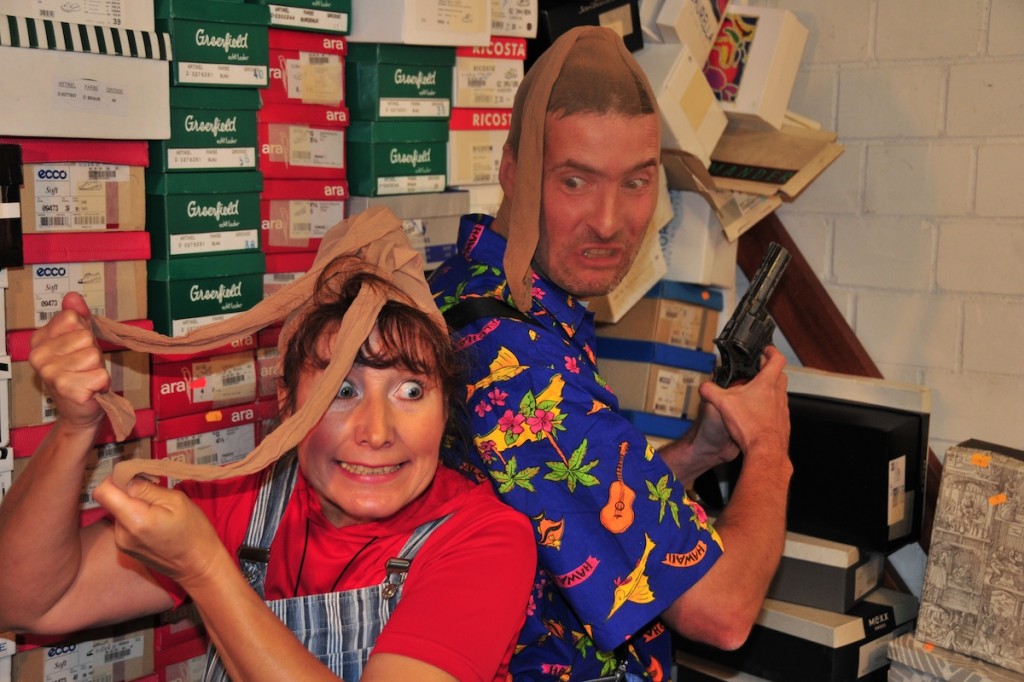 Als das kleine Dummchen Chantal und als Möchtegern-Gangster Manni begeisterten sie das Publikum. Fast schon Mitleid musste der Beobachter mit Manni haben, der gegen die geballt naive Schlichtheit von Chantal kaum ankam …